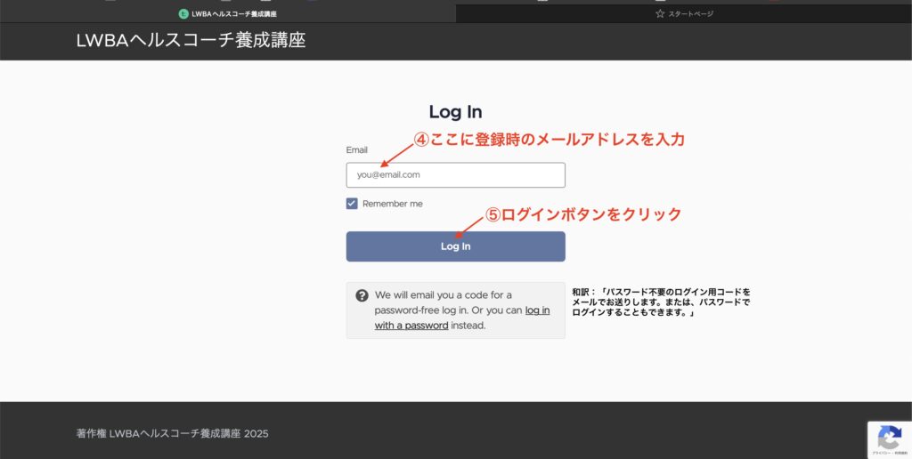 【STEP1】からLWBAヘルスコーチ養成講座お申し込み時のメールアドレスでログイン作業を行ってください。