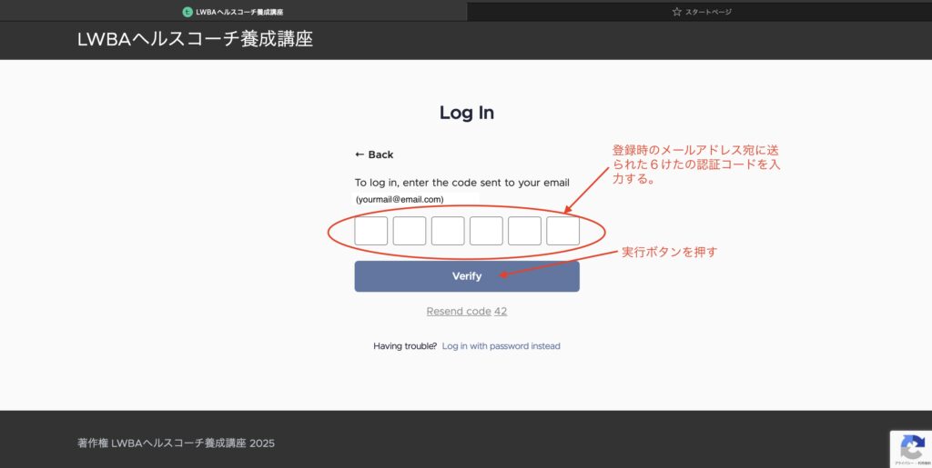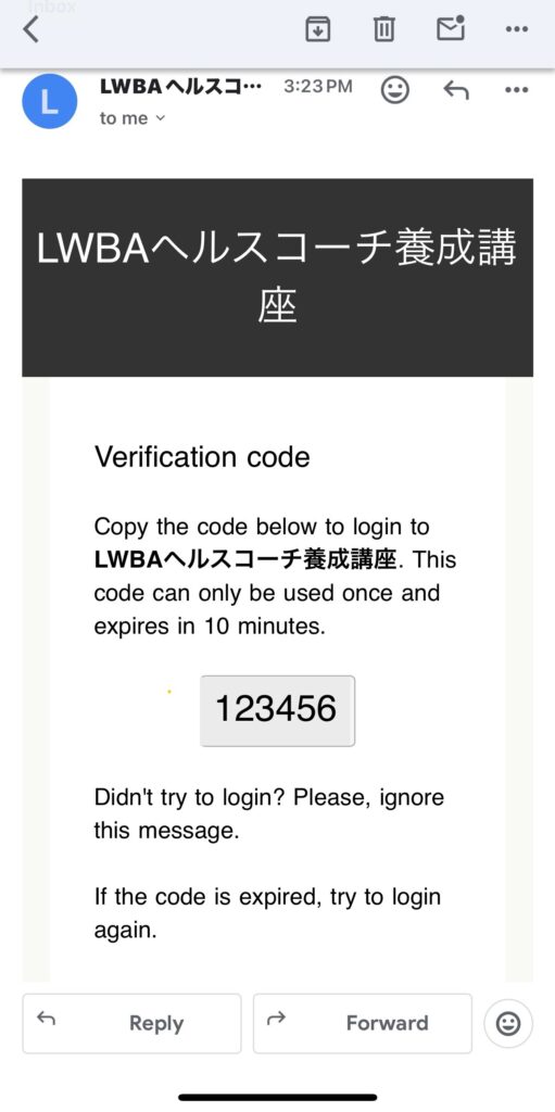 123456 is your LWBAヘルスコーチ養成講座 login code・・・・・