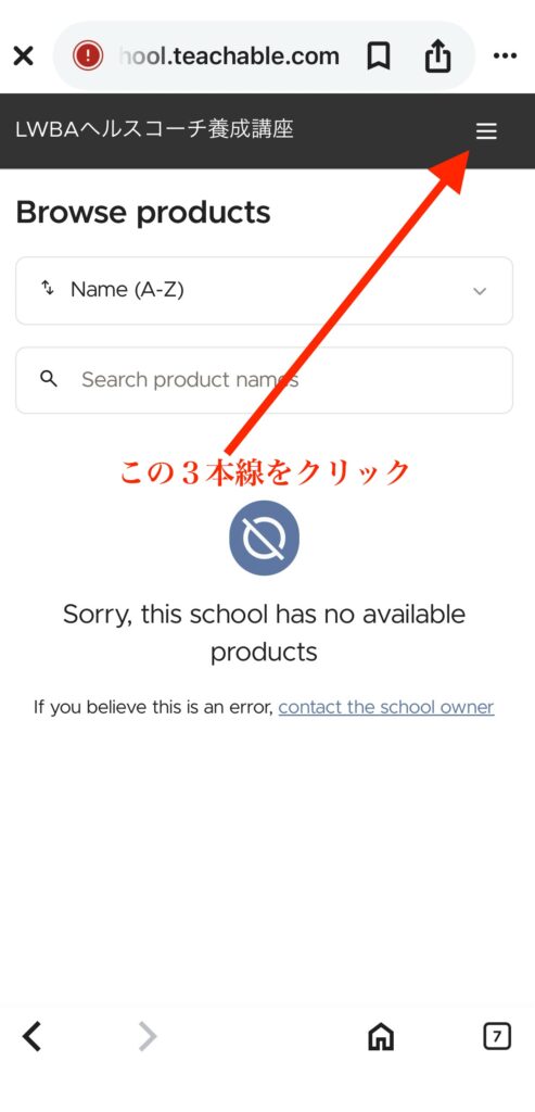 【STEP1】受講プラットフォーム「Teachable」メインページを開く